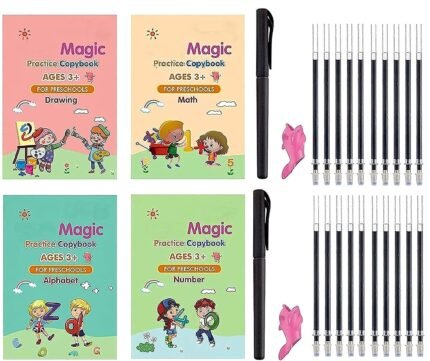 SJH Online Store PRESENTS 4 PCS Sank Magic Practice Copybook for Kid,Magic Calligraphy That Can Be Reused English Writing Practice Book for Kid (Book + 20 Refills Set)